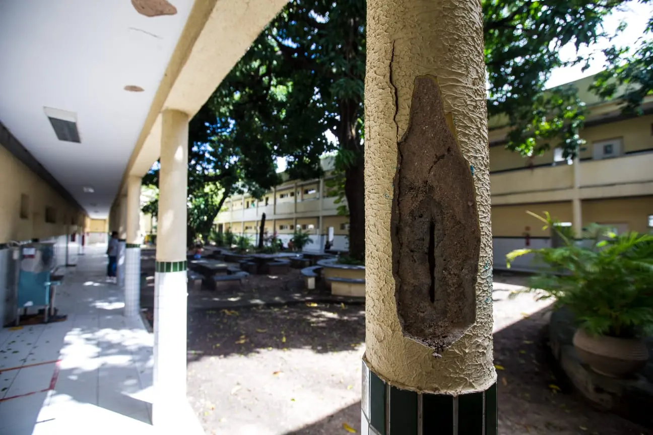 “Com a volta do presencial, nos deparamos com a infraestrutura defasada, colunas com o ferro completamente exposto e, a qualquer momento, os alunos podem sofrer um acidente”, frisa a representante.