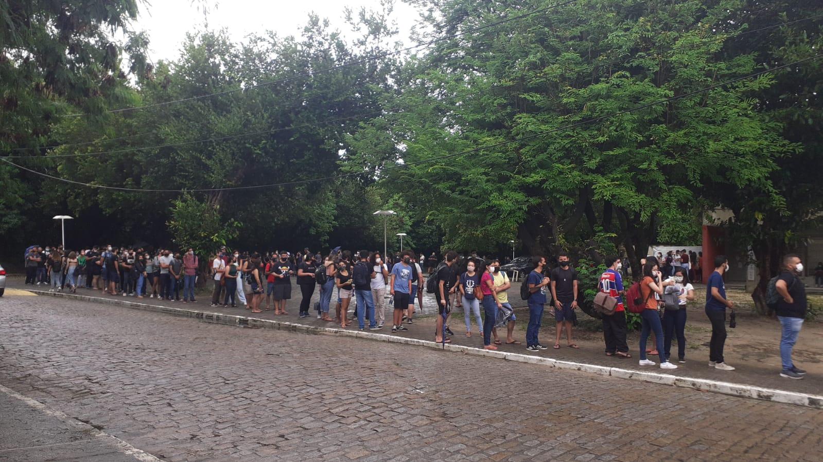 Alunos da Universidade Federal do Ceará (UFC) enfrentaram filas, nesta quarta-feira (16), com a reabertura do Restaurante Universitário (RU), na volta às aulas presenciais. Estudantes relataram as dificuldades que tiveram para almoçar nos restaurantes dos campi de Fortaleza. Imagens feitas por alunos mostram as longas filas.