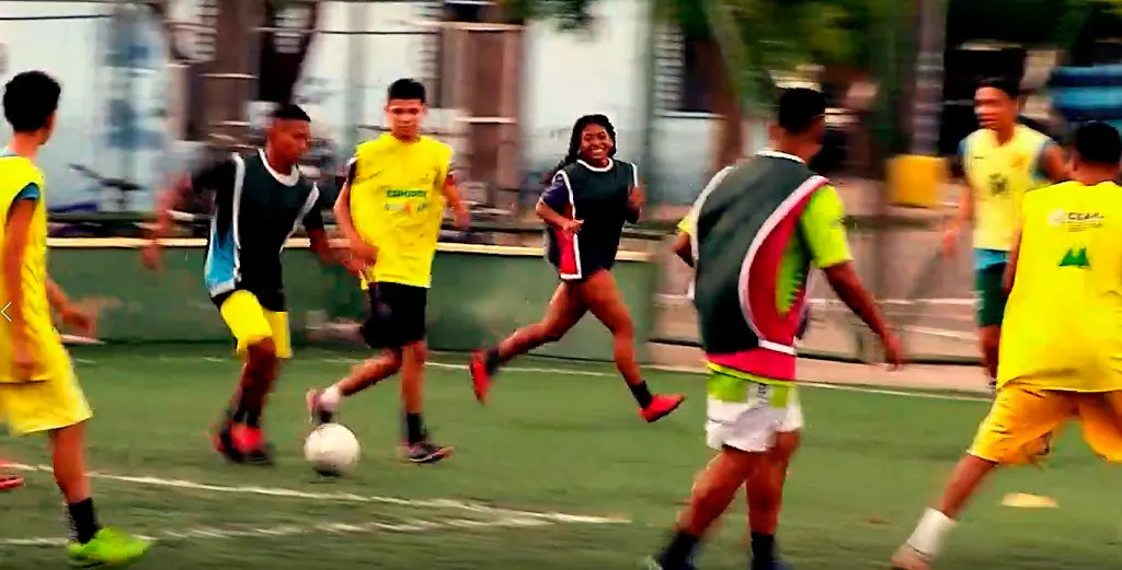 Moradoras do bairro Barroso e frequentadoras da Areninha São Bernardo, em Messejana, a dupla treina diariamente no equipamento, junto a um time formado em maioria por garotos. Mesmo com a diferença de gênero, jogam de igual para igual com os colegas.