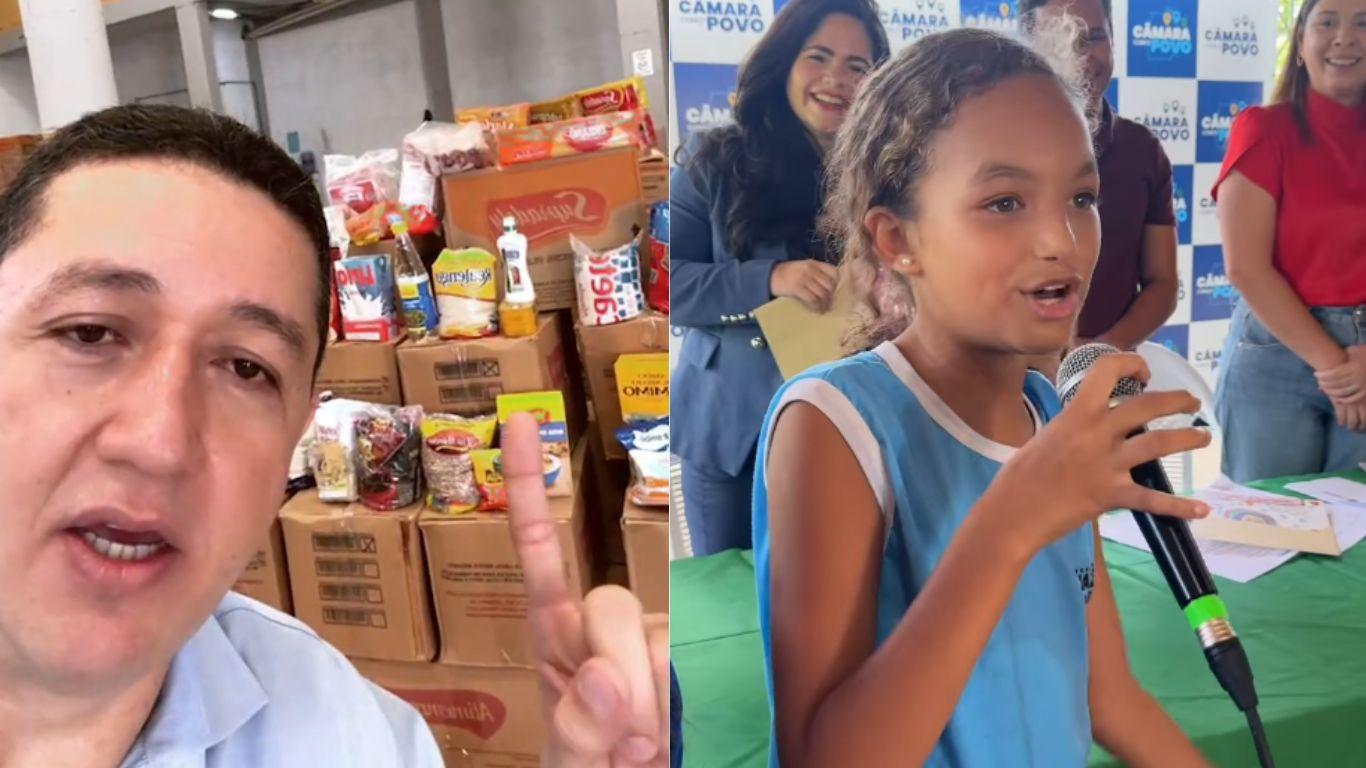 Glêdson Bezerra comentou diretamente o vídeo da estudante Maria de Fátima Pinheiro Melo, que pediu “pelo menos uma carninha” nas refeições escolares. O prefeito elogiou a atitude da menina e explicou que houve um problema no fornecimento de carne vermelha: foram solicitados 17 mil quilos do produto, mas apenas mil foram entregues inicialmente.