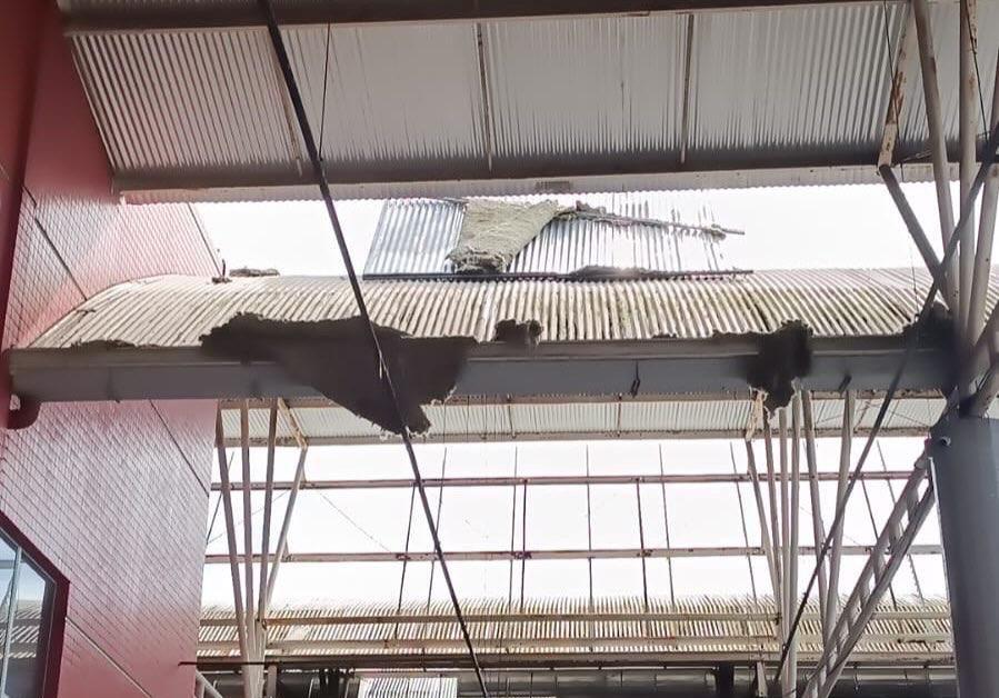 É possível observar na publicação feita pela Sejuv uma série de danos no telhado, como estrutura retorcida e fora do local de encaixe.