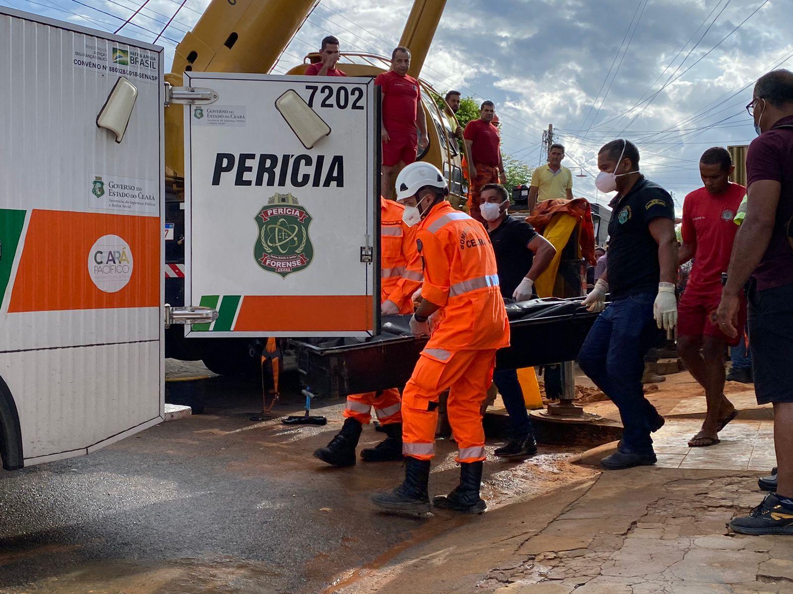 O corpo, já em estado de decomposição avançada, estava a aproximadamente 25 metros de profundidade. Para resgatá-lo, os bombeiros tiveram que cavar entre 6 e 7 m³. No sábado (26), o Corpo de Bombeiros Militar do Estado (CBMCE) confirmou que a mulher não sobreviveu, mas a lama no local dificultava a localização exata.