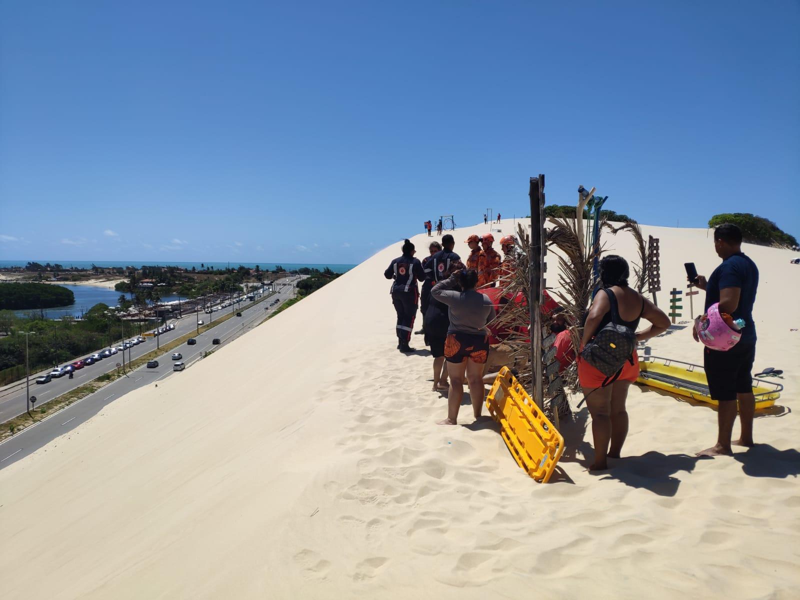 A corporação informou que o homem, de 47 anos, teria tido uma "síncope" (desmaio) depois de chegar na duna, ficando sem condições de descer. O caso ocorreu por volta de 10h50 da manhã.