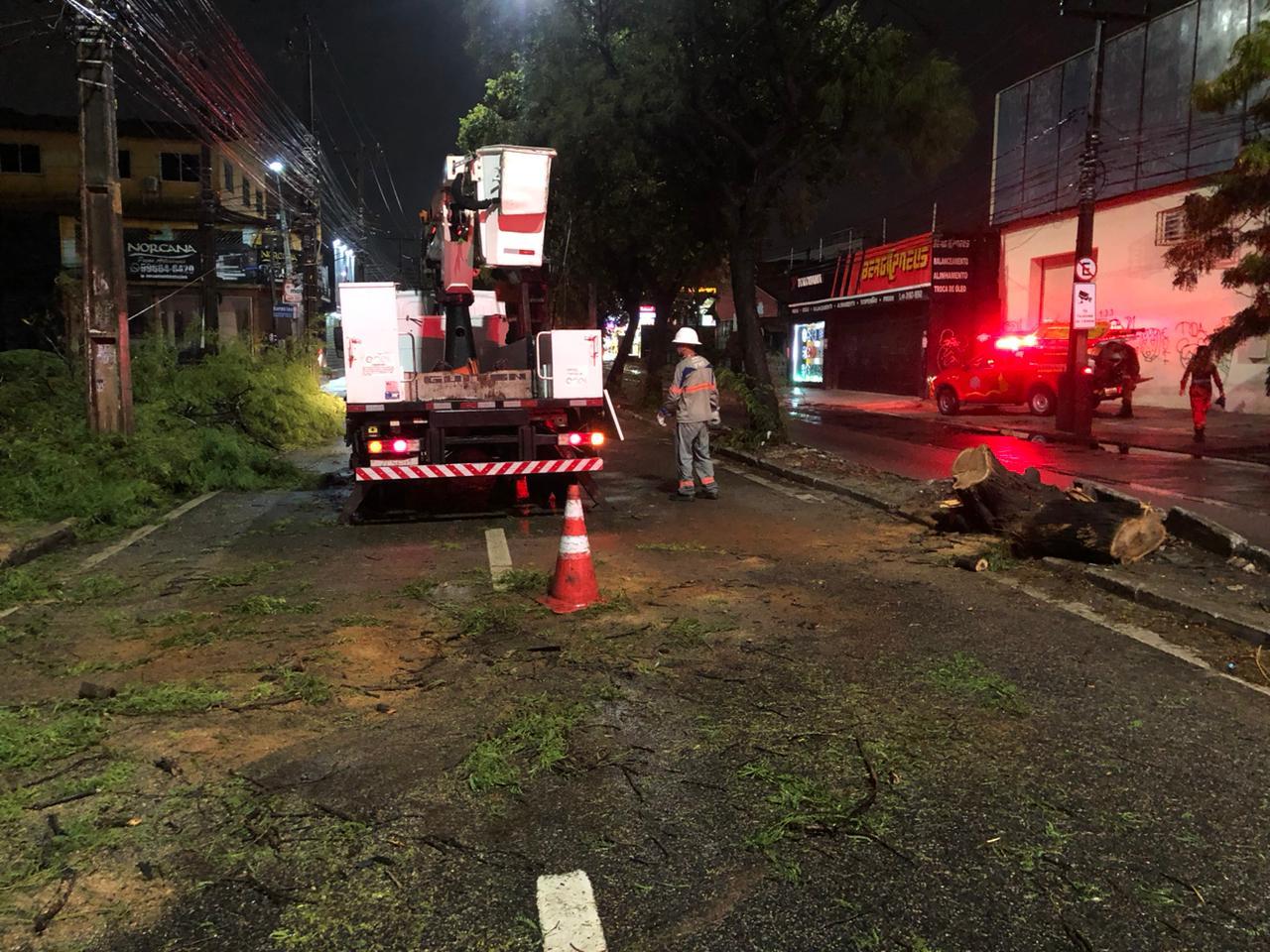 Uma equipe do Corpo de Bombeiros atendeu a ocorrência e, com funcionários da Enel Distribuição Ceará, cortou e retirou os restos da árvore da avenida.