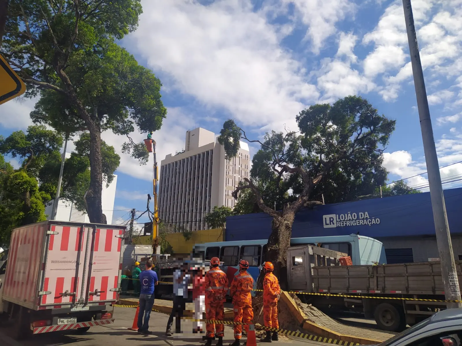 O Corpo de Bombeiros foi acionado e isolou a área por segurança. Equipes da prefeitura de Fortaleza trabalham no local para a remoção da árvore. Além do caminhão e do ônibus, a árvore também atingiu o teto de uma loja.