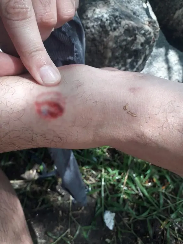 Na ocasião, estava com a outra filha, o esposo e a mãe idosa que também pretendia entrar na água. Mesmo com o ferimento, não foi necessário buscar atendimento médico.