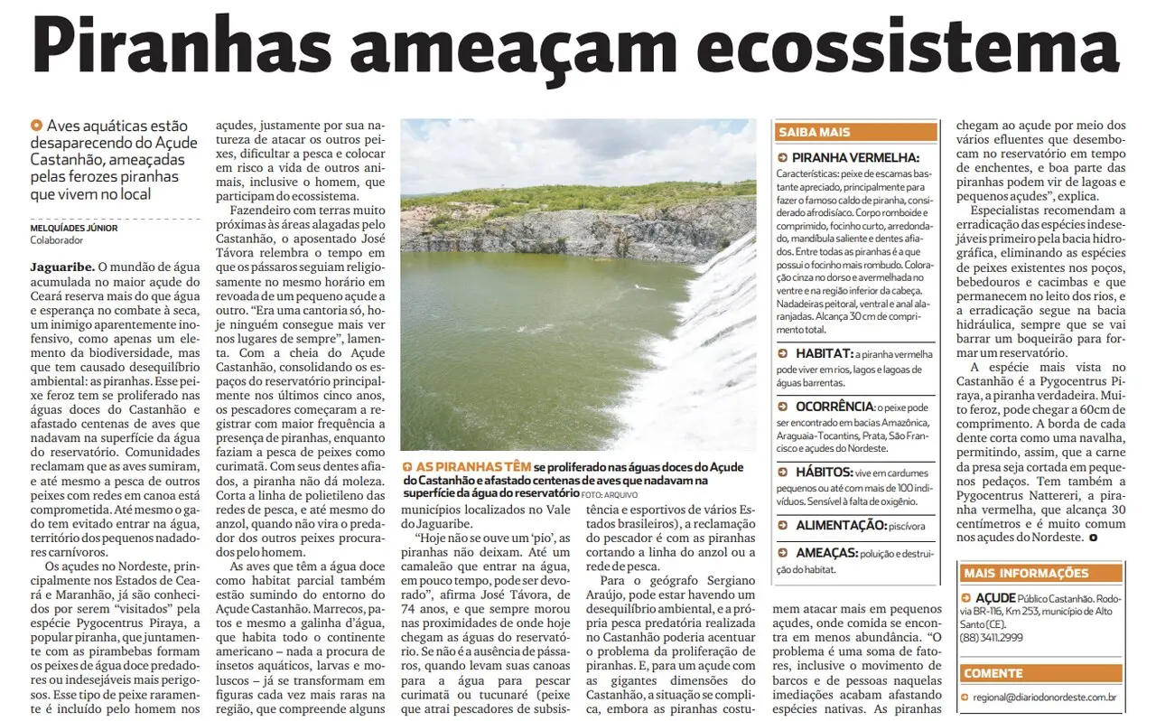 A situação chegou ao ponto de que aves aquáticas começaram a desaparecer do Açude Castanhão, ameaçadas pelas piranhas, como noticiou o Diário do Nordeste em julho de 2010.