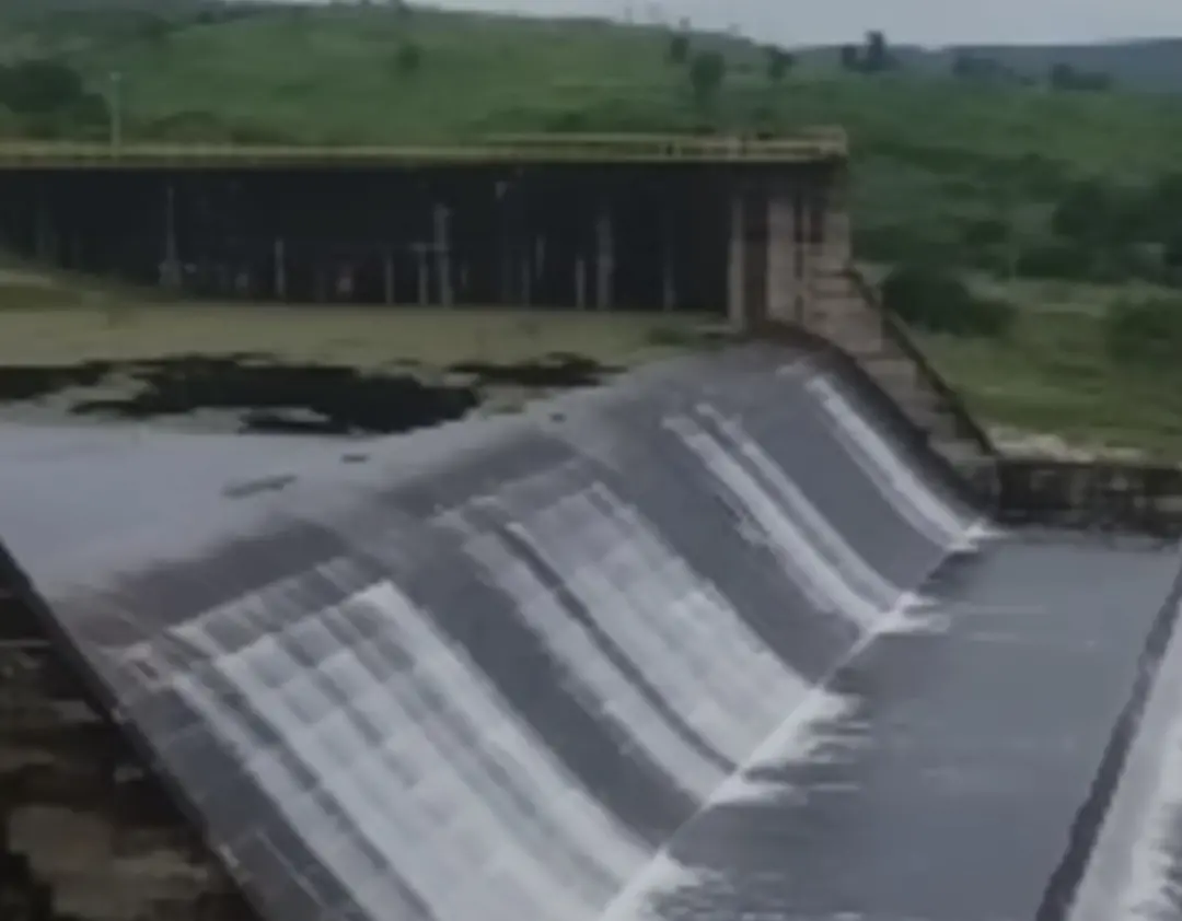 O reservatório, que tem 17,4 hectometros cúbicos, ultrapassou a 100% de sua capacidade neste sábado (6). As informações e os dados sobre barragem sangrando são da Companhia de Gestão dos Recursos Hídricos (Cogerh).