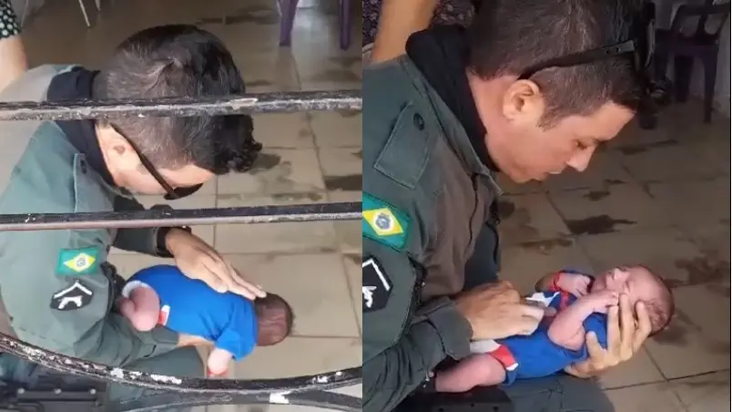 Bebê de 8 dias é salvo por PM após se engasgar com leite materno no bairro Vila União; veja vídeo