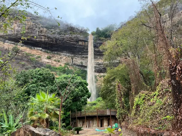 Com a quantidade de água das últimas chuvas, a queda d’água de 130 metros de altura formou o que os moradores chamam de "véu de noiva".