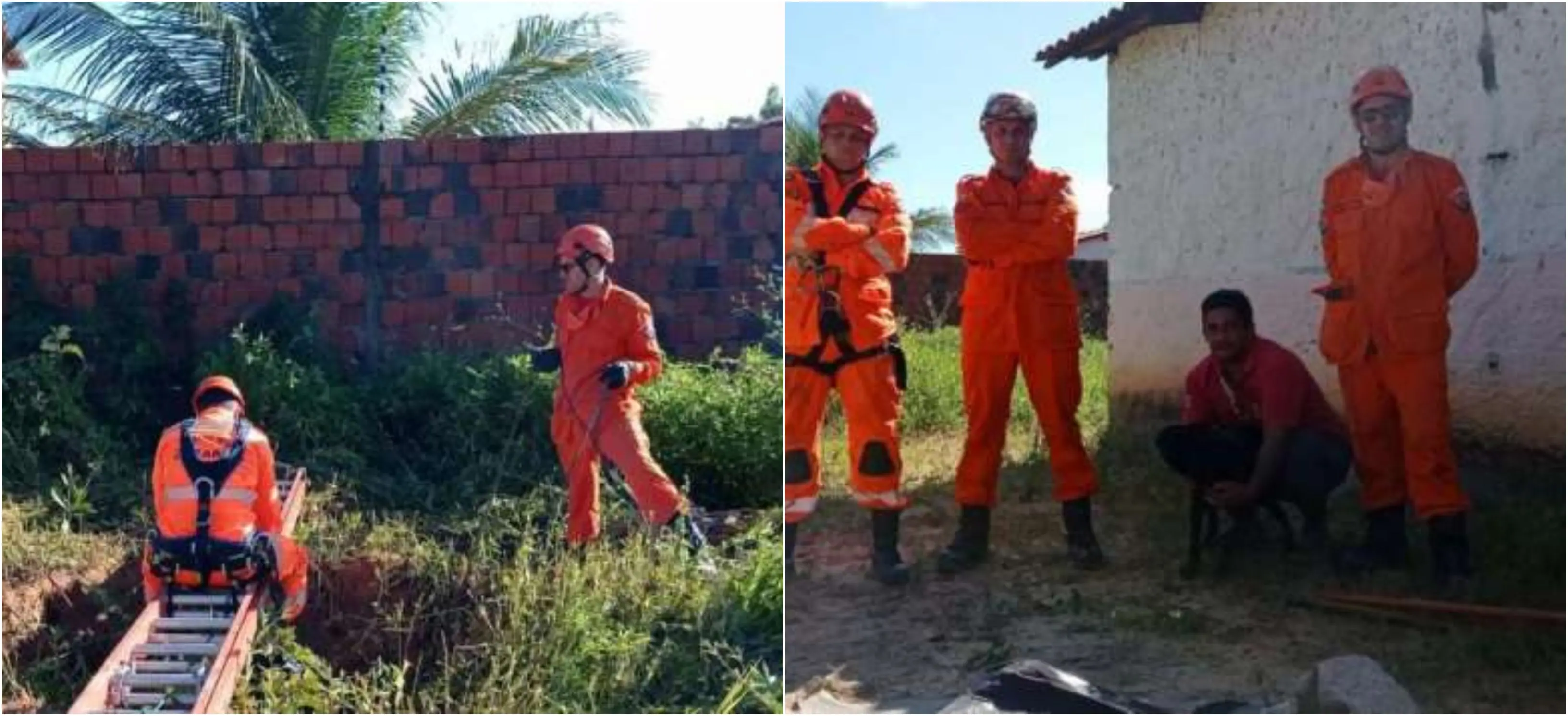 Bombeiros resgatam pitbull que caiu em cacimba em Cascavel, na Grande Fortaleza