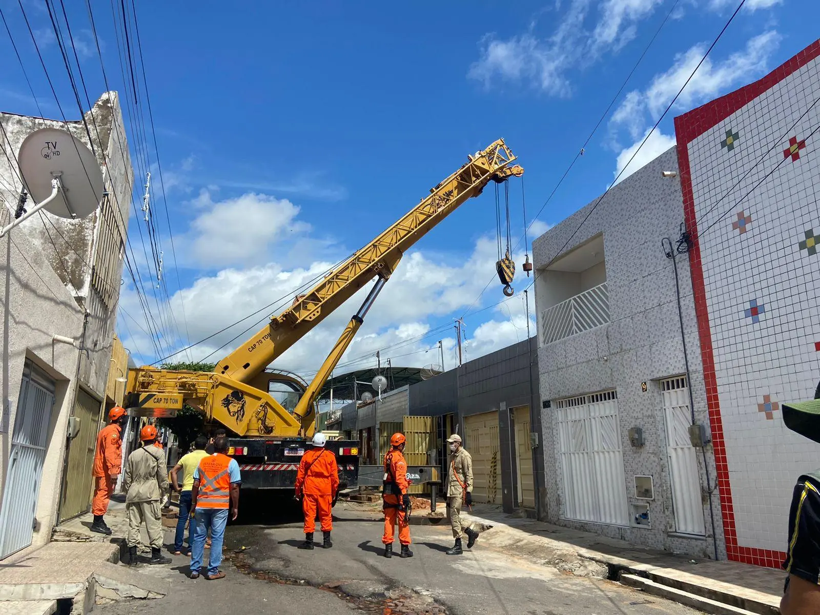 Pelo menos duas residências vizinhas à casa em que estão sendo feitas as buscas "têm risco de comprometimento", segundo a equipe de bombeiros.