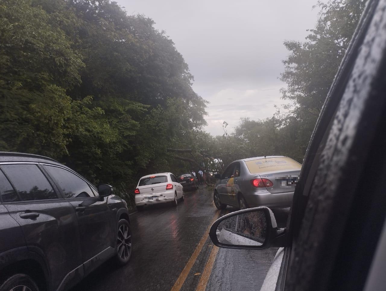 A causa apontada para a interdição da rodovia, nas duas faixas, foi a queda de uma árvore, em um local de difícil visibilidade, o que pode causar acidentes, alertou a PRF.