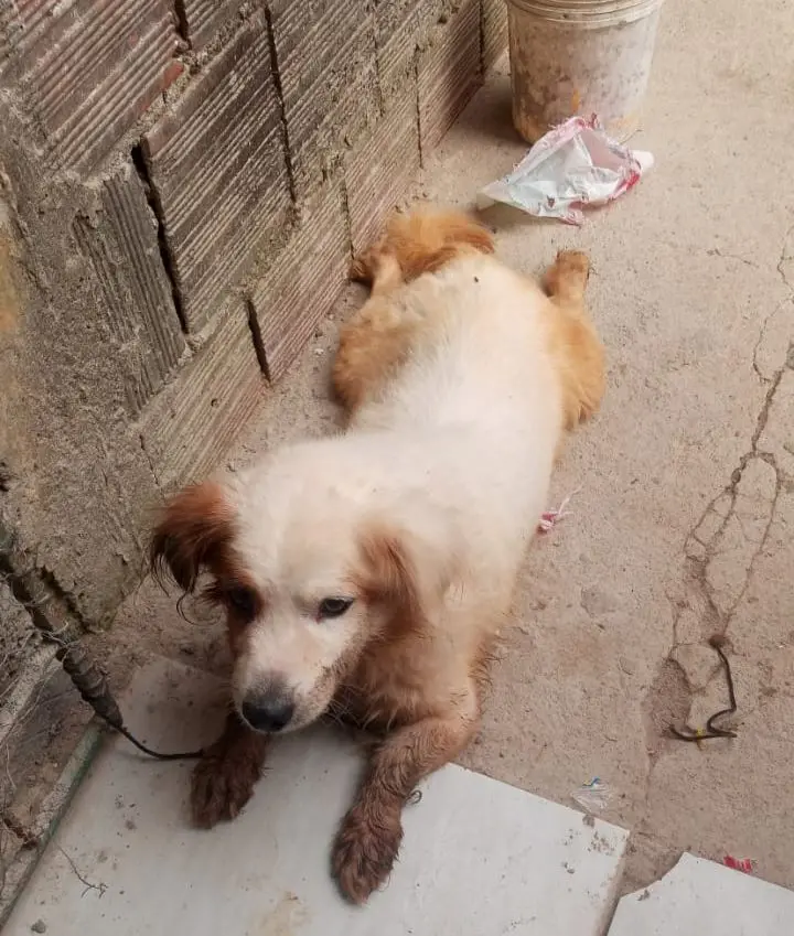 Animal foi resgatado e acolhido por um casal que comumente presta assistência a cachorros abandonados da região, mas que não tem condições financeiras para ficar com ele