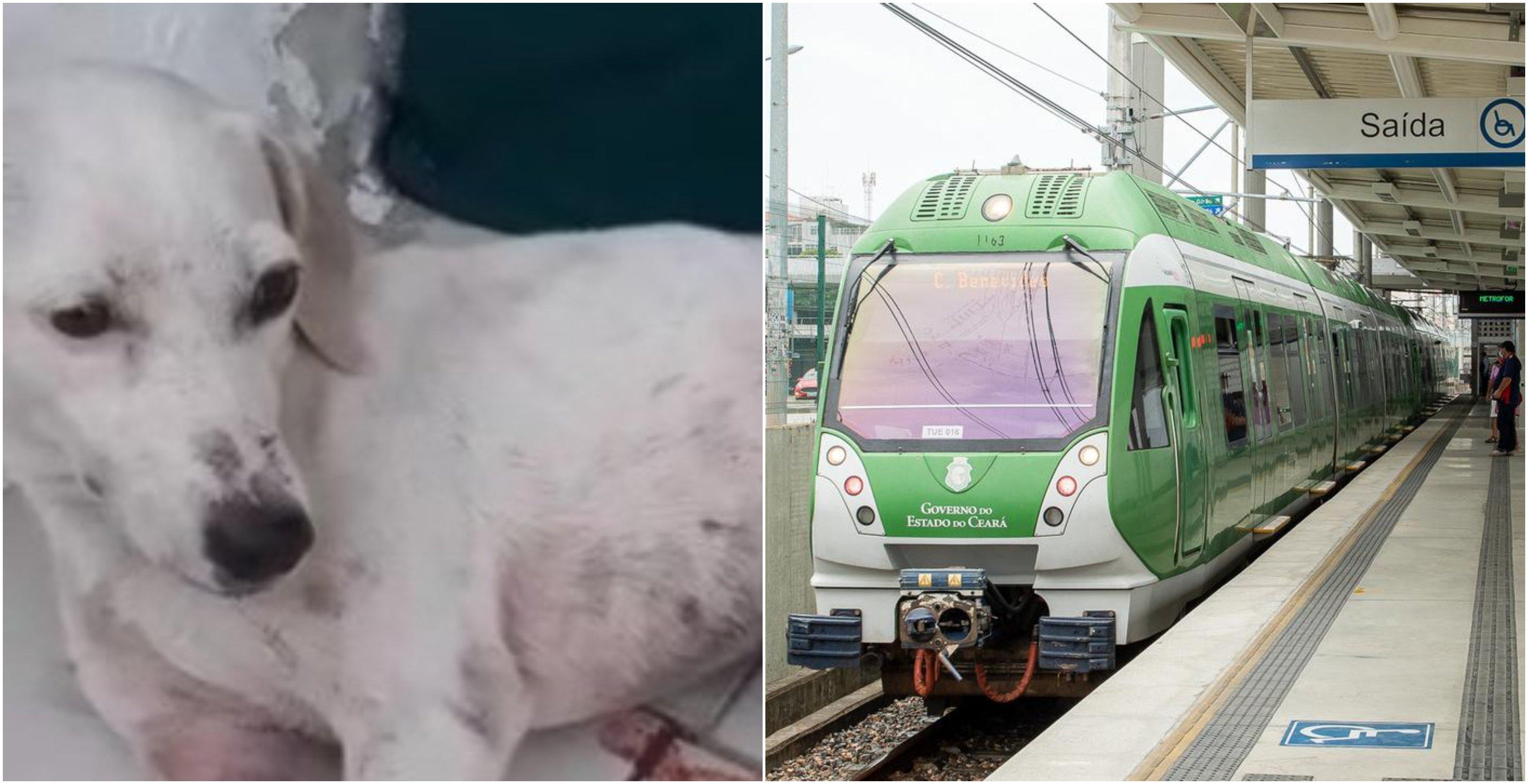 Uma cadela foi atingida por um vagão do Metrô de Fortaleza (Metrofor), no início da tarde deste sábado (12), próximo à Estação do bairro Presidente Kennedy. O animal teve as duas patas traseiras mutiladas com o impacto.