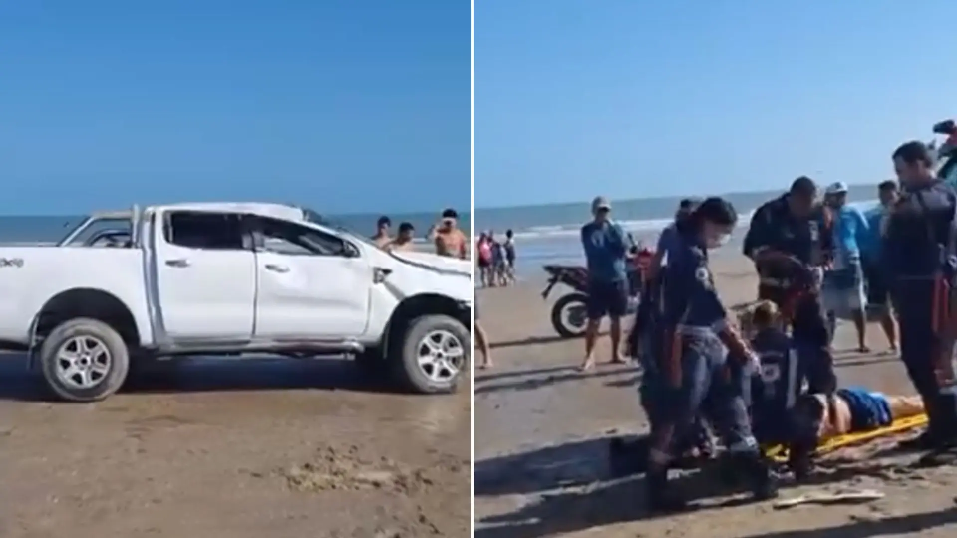 Caminhonete capota em praia de Camocim, no litoral do Ceará