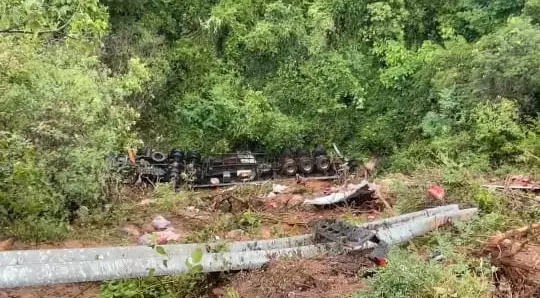 Carreta com café tomba no interior do Ceará e tem carga saqueada; veja vídeo