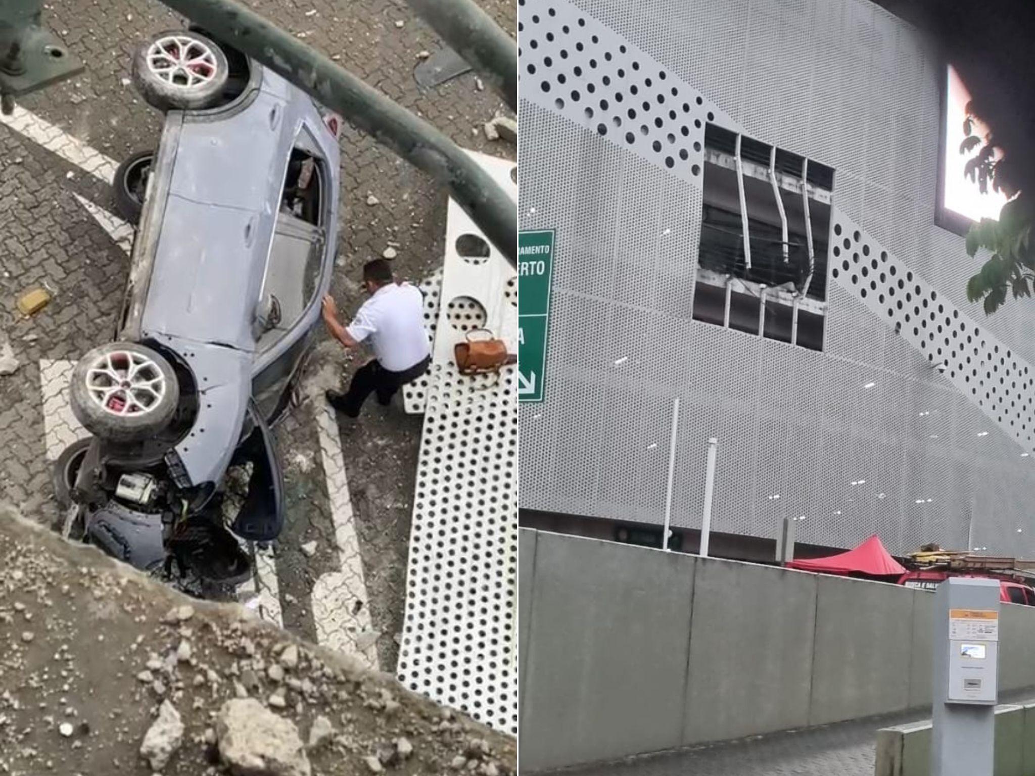 Carro cai do 3º andar do edifício-garagem de estacionamento em shopping de Fortaleza