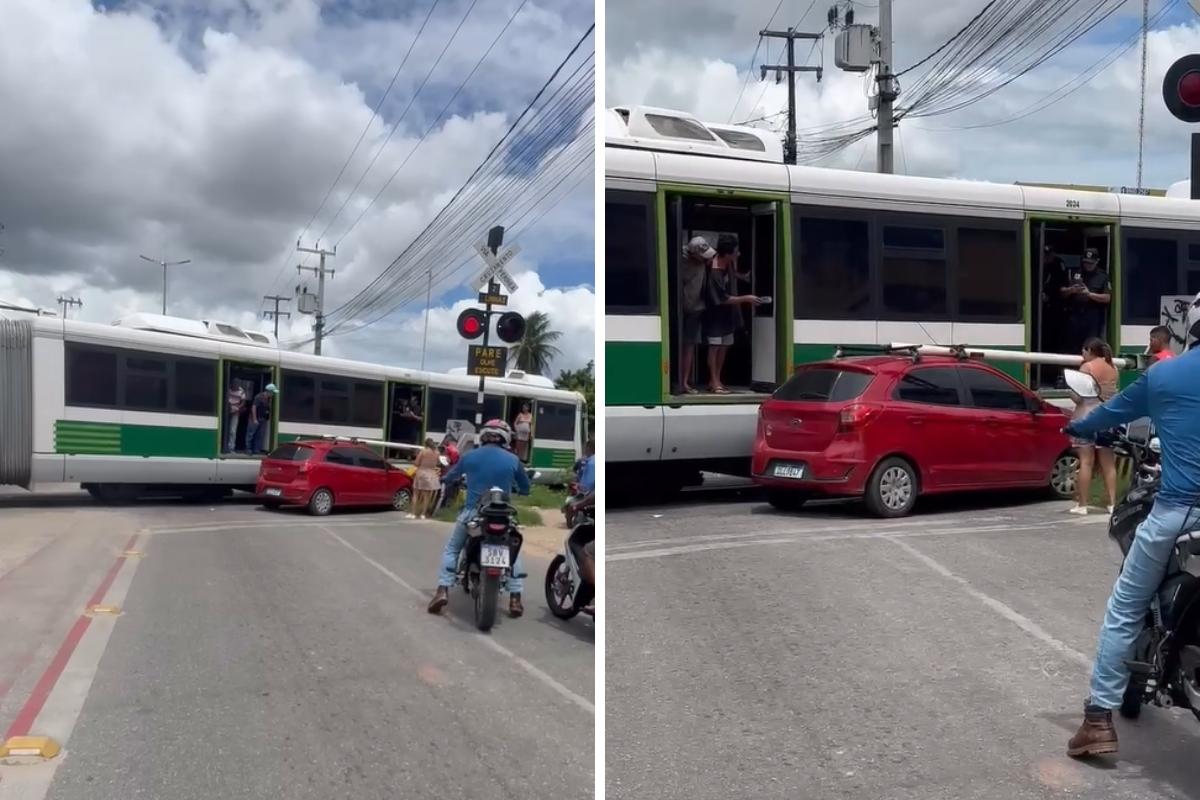 Carro e VLT colidem em cruzamento na Avenida Dom Almeida Lustosa, em Caucaia