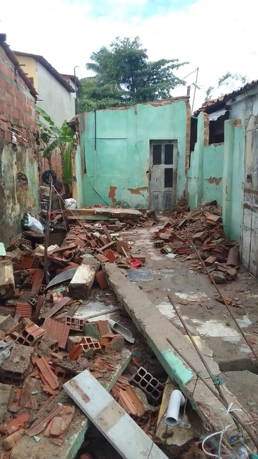 Durante as fortes chuvas em Fortaleza, a casa da vendedora ambulante Rosineide de Sousa Ferreira, 60 anos, desabou, por volta de 1h da madrugada de domingo (11). Fazia pouco tempo que ela tinha chegado de mais uma noite de trabalho e, ao fechar o portão, ouviu as paredes "estalarem".