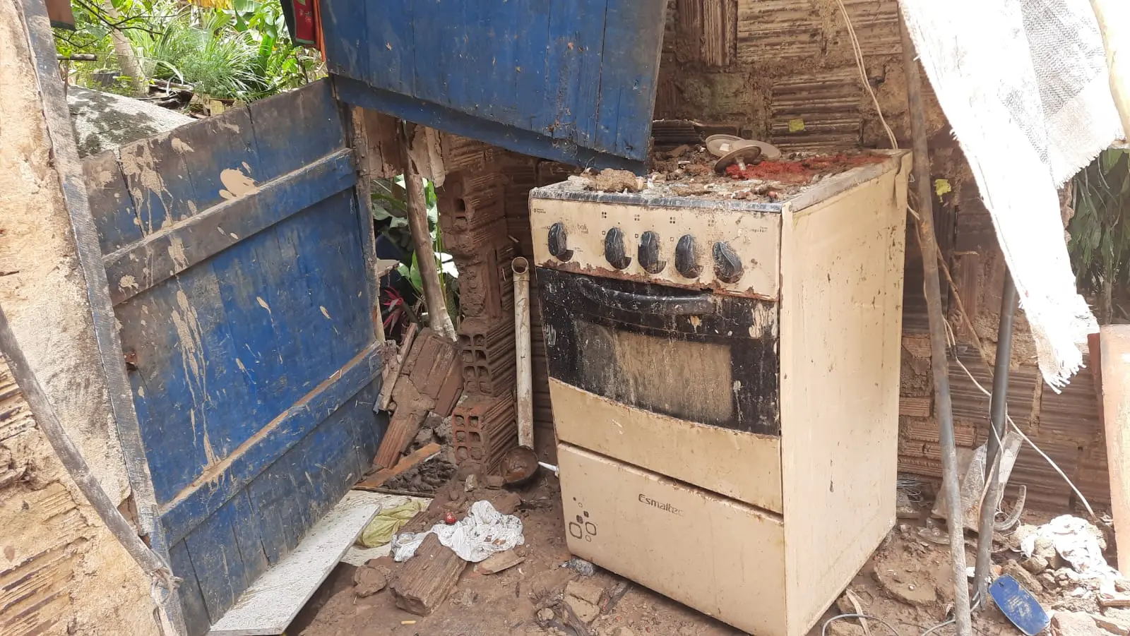 A casa acabou desabando em cima de tudo que estava dentro. Apenas dois cômodos resistiram à força das águas: um quarto e um banheiro.