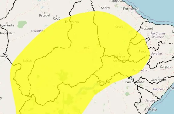 O índice de Perigo Potencial, classificado em cor amarela, é o primeiro de uma escala de três. Apesar do alerta, o Inmet afirma haver baixo risco de incêndios florestais e à saúde.