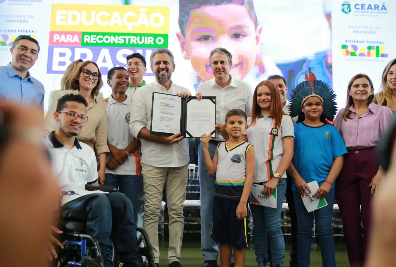 A adesão do Ceará ao programa foi formalizada na manhã desta segunda-feira (28) com a assinatura do Protocolo de Intenção pelo ministro da Educação, Camilo Santana, e o governador do Estado, Elmano de Freitas, em solenidade no Centro de Eventos do Ceará.