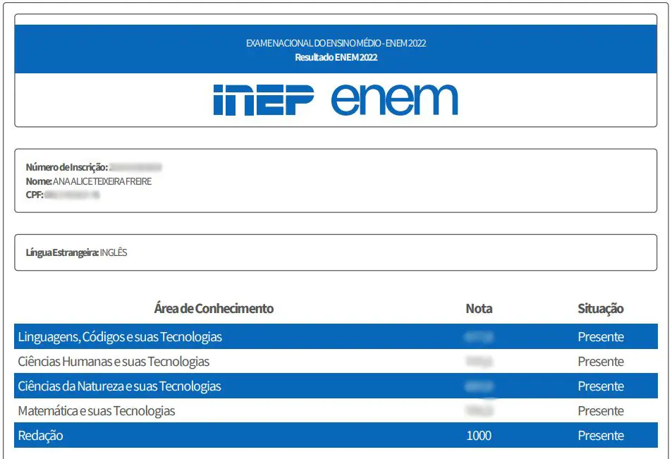 “Isso aqui é um 100? Eu tirei 100 na redação?!” Esse foi o primeiro pensamento de Ana Alice Teixeira, 17, ao abrir o painel de resultados do Enem, na noite de ontem (8), e ver que atingiu a nota máxima na redação: o tão sonhado 1000.