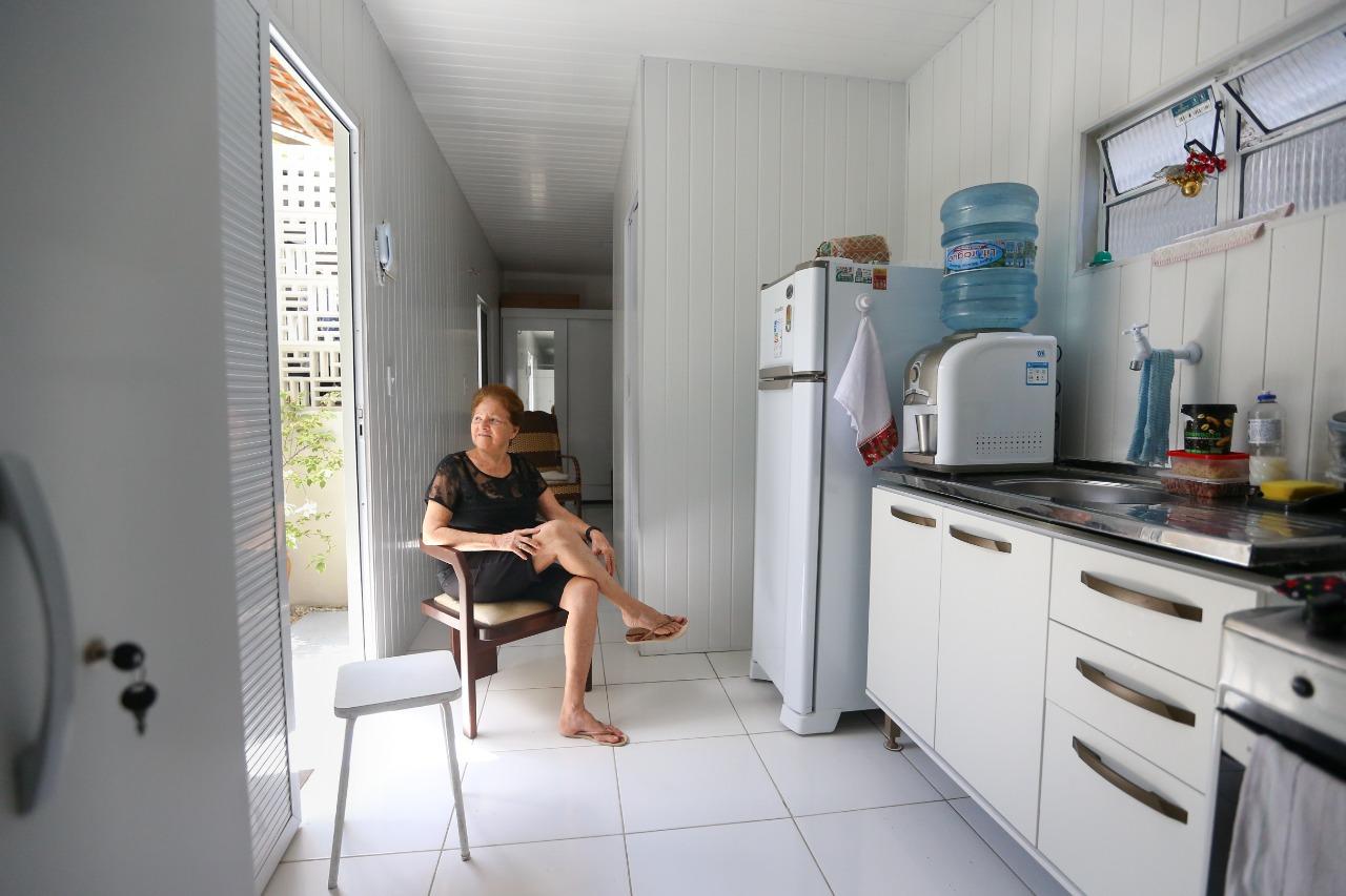 “Aqui é tão ventilado, comprei um ventilador e nunca usei. Meu quarto é uma maravilha, se eu deitar agora eu durmo, e aqui não tem zuada de nada, nem de rádio e nem do trânsito, porque é bem reservado”, descreve sobre o novo lar desde que voltou a morar em Fortaleza.