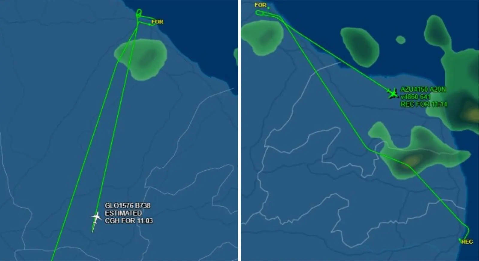 Além desse, o Diário do Nordeste apurou que outro voo (4150, da Azul), vindo de Recife, em Pernambuco, também não conseguiu pousar na Capital devido às chuvas e teve de mudar a rota para Natal, no Rio Grande do Norte, para reabastecer a aeronave.