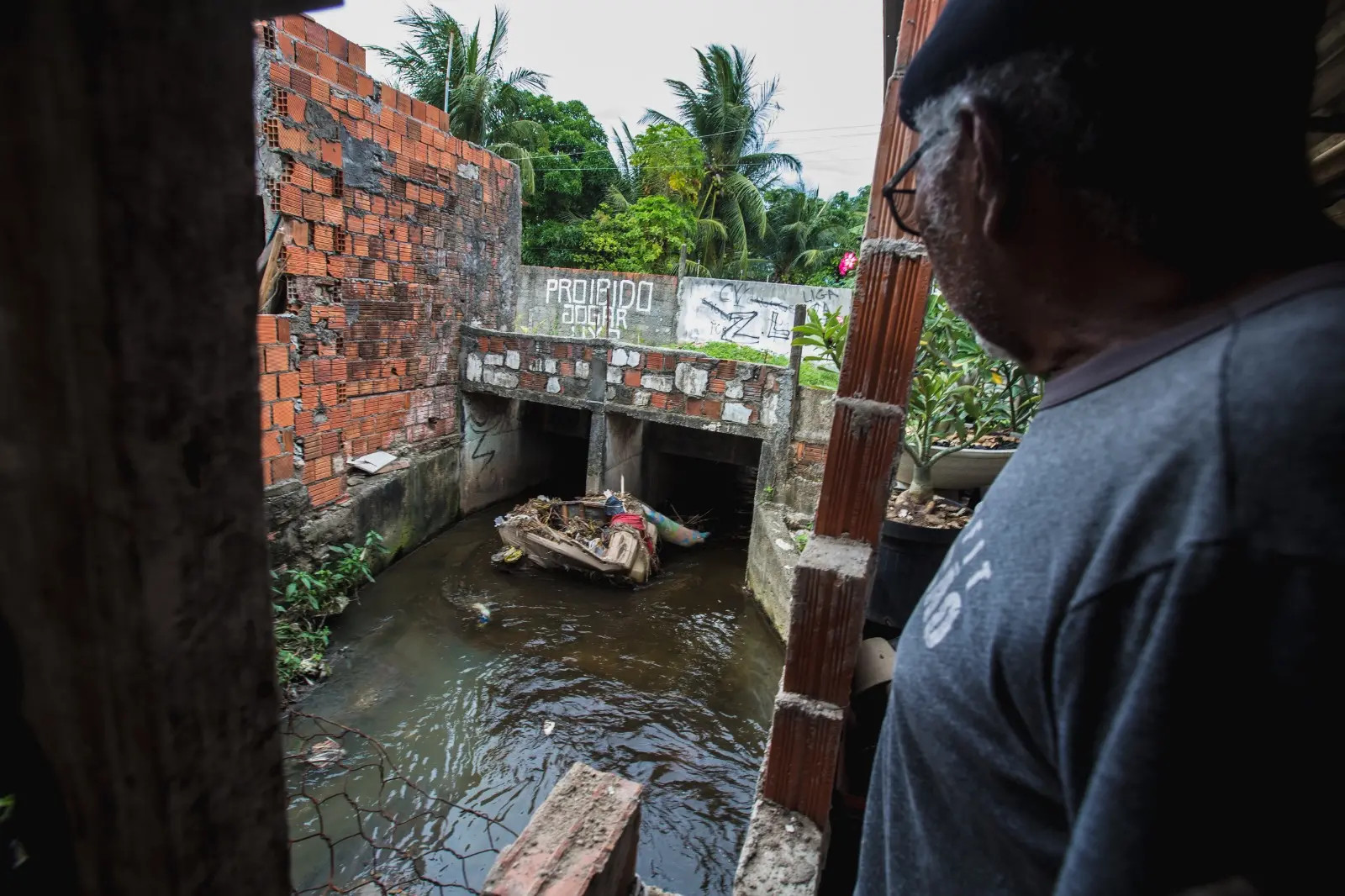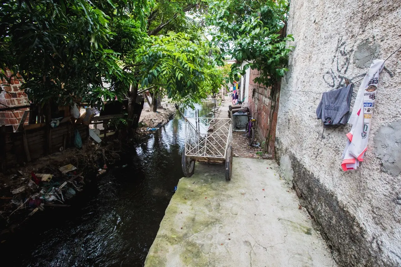“Se dá uma chuva, penso logo: ‘vou pegar uns tijolos e subir os móveis, senão a gente vai perder’”, conta Valdecio, morador da Comunidade do Riacho Doce, em Fortaleza. Desde que nasceu, há 32 anos, vive no lugar onde vizinhos e familiares se reúnem para limpar o canal improvisado e criar barreiras na frente de casa. Mas o problema não tem vazão.