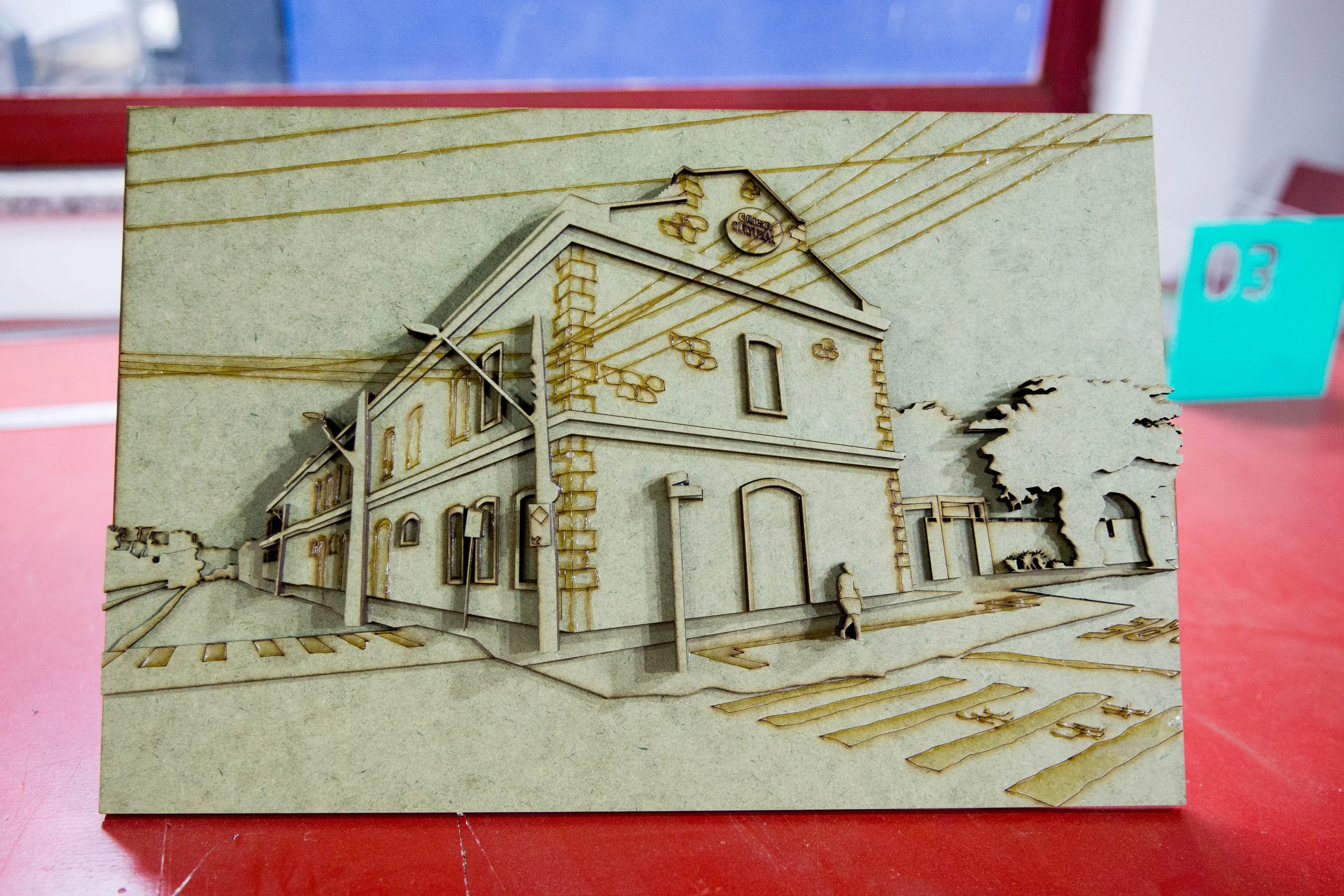 Também é preciso pensar que materiais e técnicas serão utilizados — MDF, acrílico ou impressão 3D —, em qual tamanho a peça será produzida e como será possível comunicar certas características das imagens. É desafiador explicar e demonstrar elementos como perspectiva e sombra, exemplifica o professor.