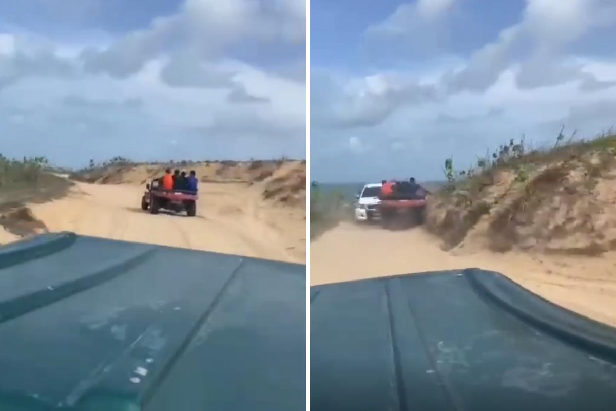 Colisão entre buggy e caminhonete deixa dois turistas feridos em dunas de Canoa Quebrada