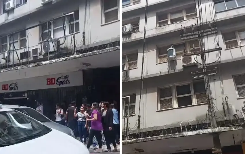 Concreto de prédio cai e atinge rede elétrica e carro no Centro de Fortaleza