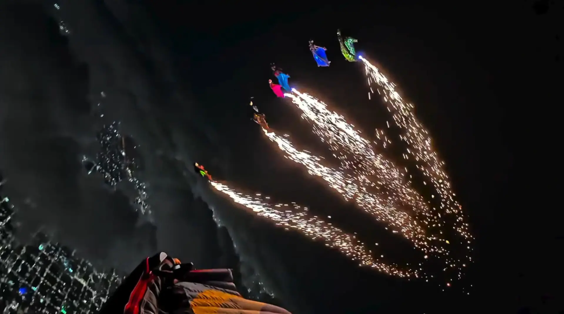 Quem teve a chance de observar o salto se deparou com um espetáculo que misturava esporte, tecnologia e arte, enquanto os saltadores cortavam o céu com trajes iluminados.
