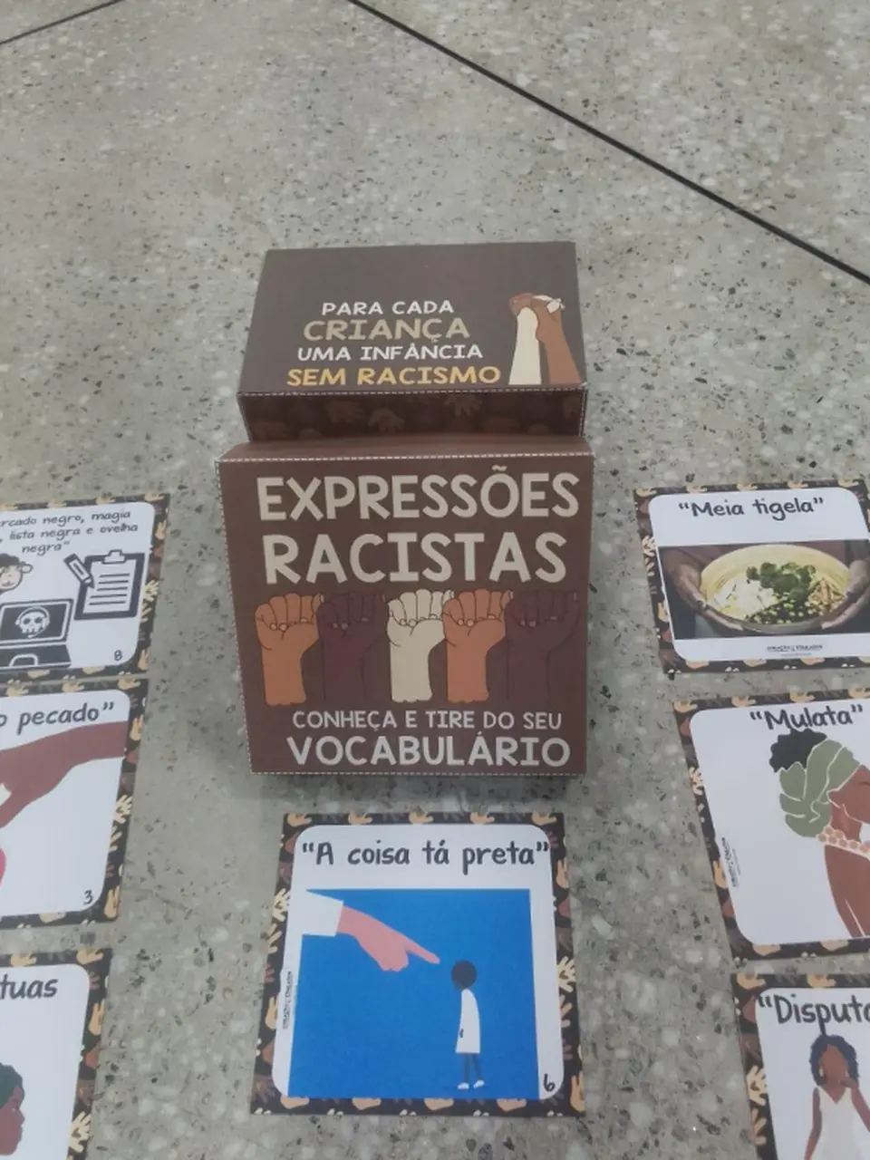 - Caixa de expressões: 24 cartões com o significado de termos racistas;