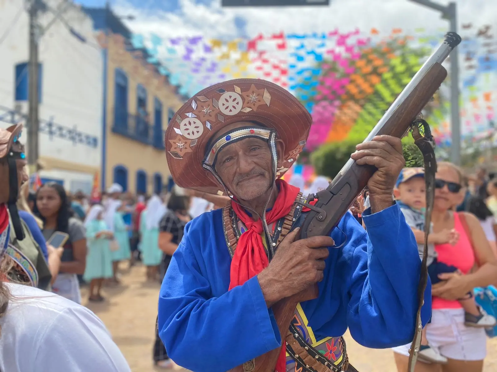 O desfile, realizado pelas principais ruas de Barbalha, acontece após dois anos de interrupção devido à pandemia da Covid-19. Para os participantes, o retorno é motivo de "alegria". Bacamateiro há 69 anos, mestre Francisco Gomes Novaes, de 71 anos, se emociona ao falar do retorno às ruas.