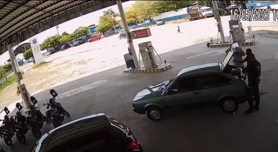 Imagens do aluno correndo do CVT em direção à via foram registradas pela câmera de segurança de um posto de combustíveis.