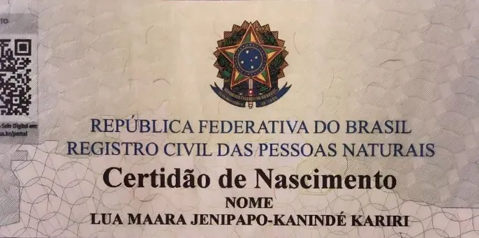 Lua Maara Jenipapo-Kanindé Kariri nasceu no dia 26 de outubro deste ano, em Crateús. Com apenas dois meses de vida, a pequena mal sabe, mas já carrega uma conquista importante para o movimento indígena no Ceará: após intensa mobilização com o cartório responsável, ela se tornou a primeira pessoa do Estado com sobrenome oficial formado somente pelas etnias da família.