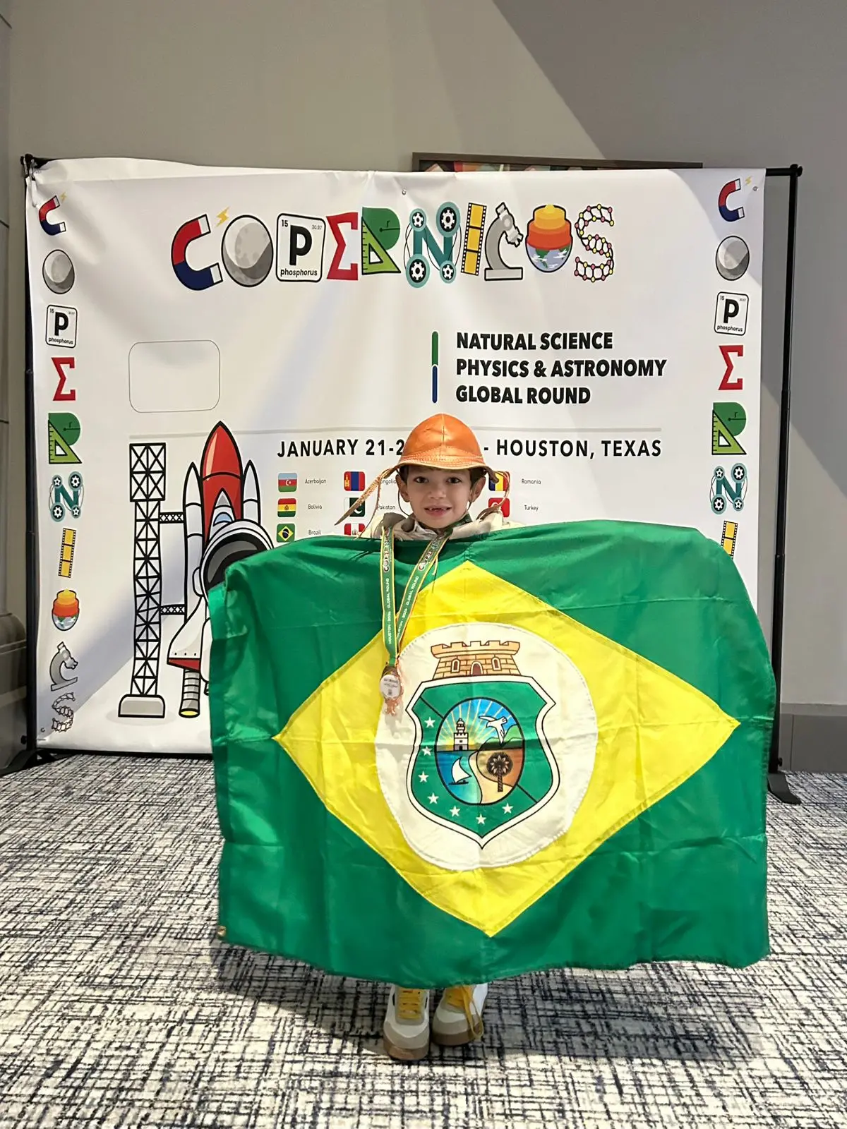 O cearense Augusto de Paula Bezerra, de 8 anos de idade, conquistou nos Estados Unidos, no último domingo (25), uma medalha de bronze em uma prestigiada olimpíada internacional de ciências, a Copernicus Global Round 2026. Ele é superdotado e aluno da rede pública municipal de Baturité, e competiu na categoria de ciências naturais.