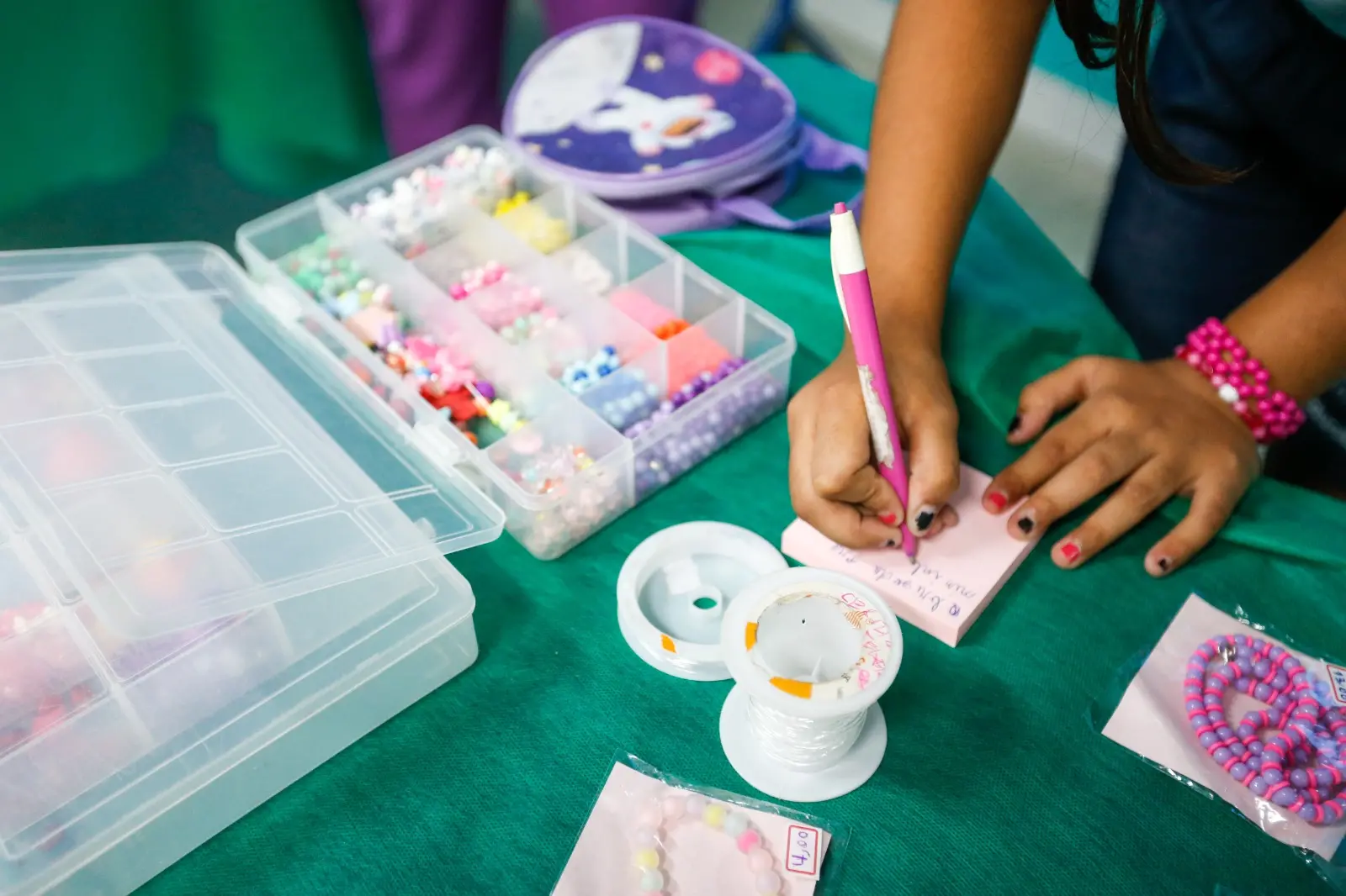 A autônoma Ana Karine Teixeira, 34, também cuida de uma criança atenta às lições de empreendedorismo. Nas últimas férias, viu uma estratégia usada por ela na juventude ser revivida pela filha Cecília: a confecção e venda de bijuterias.