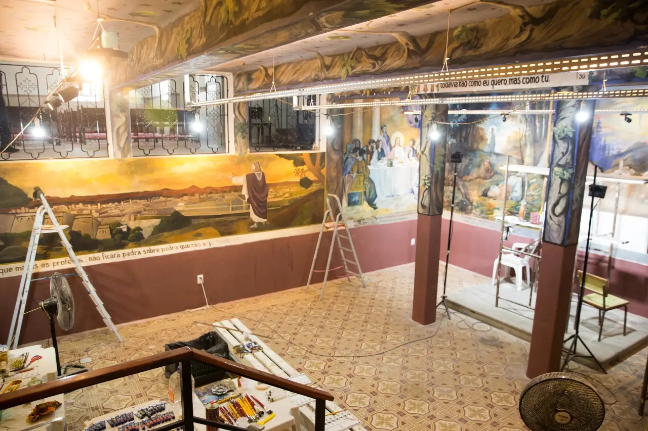 Antes de começar a intervenção no local foi necessário um trabalho de pesquisa para recompor parte das pinturas que foram cobertas por tinta amarela, como detalha Antônio Vieira, conservador e restaurador de obras de arte.