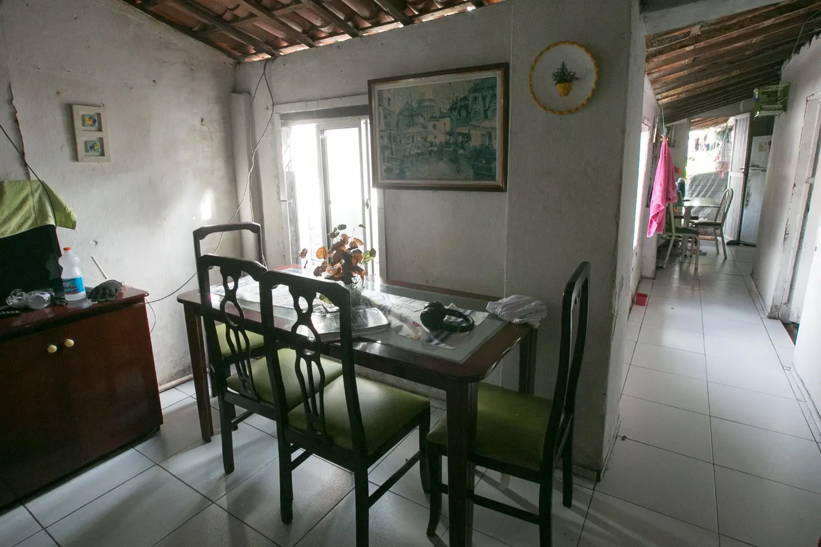 A moradia ainda possui parte do piso original e as carnaúbas usadas como estrutura para o telhado. Diferente das habitações mais modernas, onde cada metro quadrado precisa ser bem utilizado pela falta de espaço, a casa de Celeste é ampla e mantém um quintal cheio de verde.