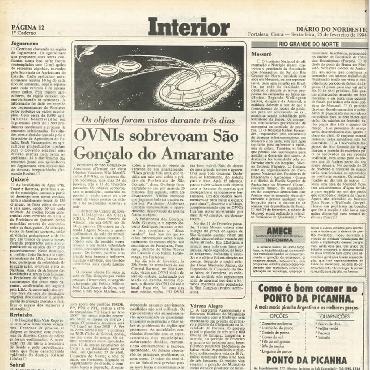 Moradores de São Gonçalo do Amarante, na Região Metropolitana de Fortaleza (RMF), contaram ter visto ovnis nos dias 24 de janeiro, 3 e 11 de fevereiro de 1994.