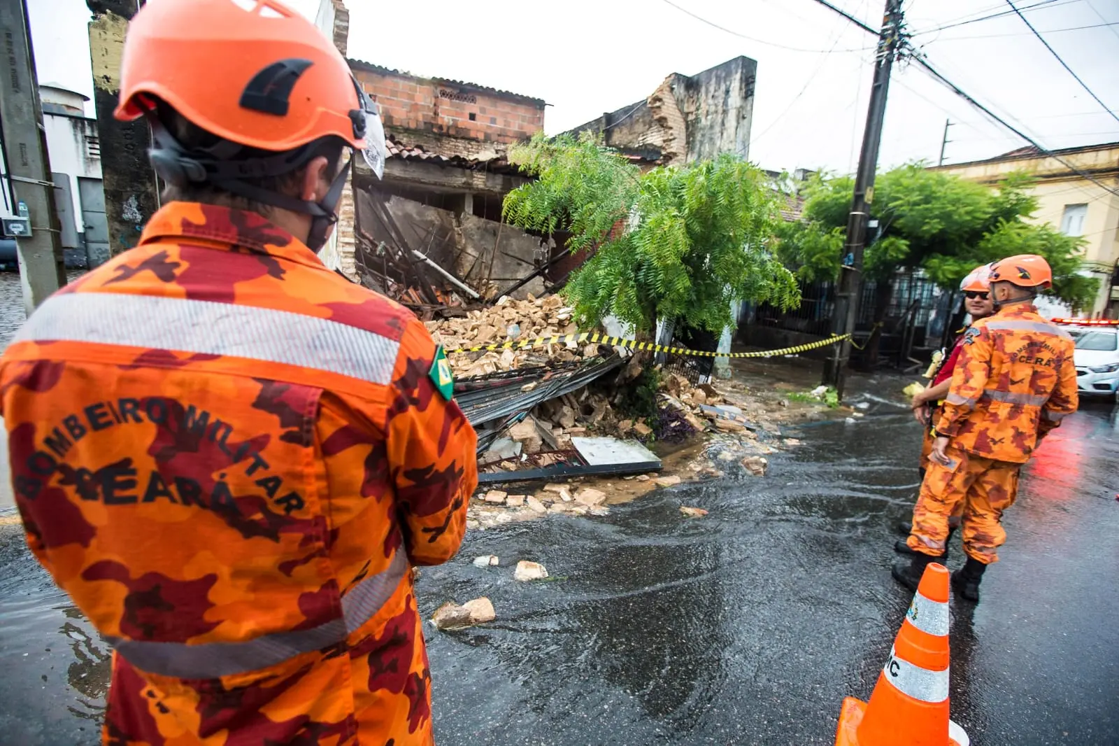 Desabamento parcial de residência deixa um ferido durante fortes chuvas em Fortaleza