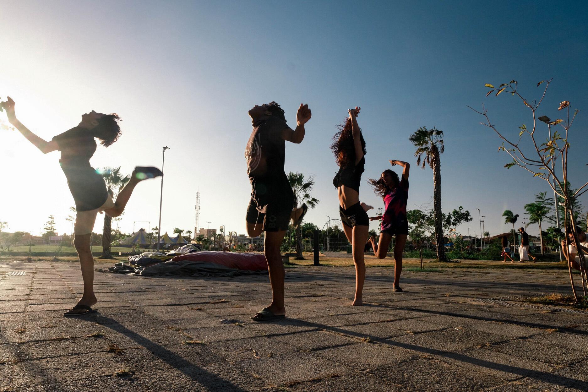 Geralmente a gente ensaia e grava nas praças nos bairros onde um maior número de pessoas do nosso grupo mora, mas o Parque Rachel de Queiroz é um dos principais locais pelos cenários que temos. Hoje em dia seria difícil ter um espaço fixo para dançar, um local fechado tem custos. O Parque é de graça