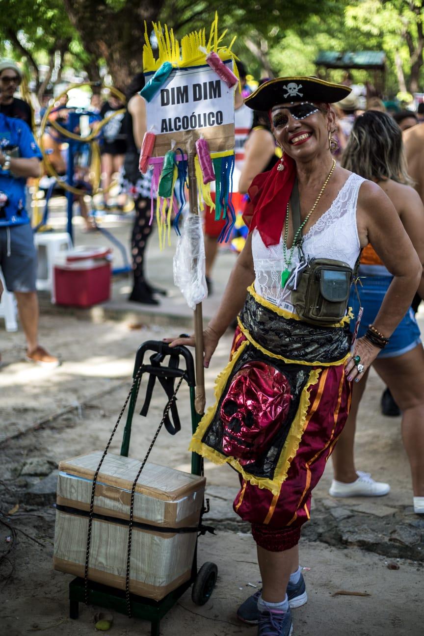 A professora Gabriela Castro uniu a curtição e a oportunidade de fazer uma renda extra. Nesse Carnaval, ela está vendendo dindin alcoólico.