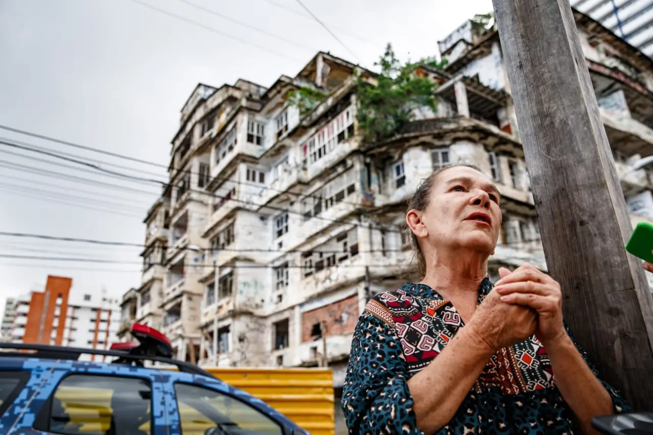 Quando a aposentada Maria de Fátima Vieira, 67, comprou um apartamento no Edifício São Pedro, na Praia de Iracema, em Fortaleza, em 1988, não imaginava ser surpreendida com a demolição do prédio por problemas estruturais 35 anos depois. Na manhã desta terça-feira (5), viu a movimentação no local e soube da notícia pela TV.