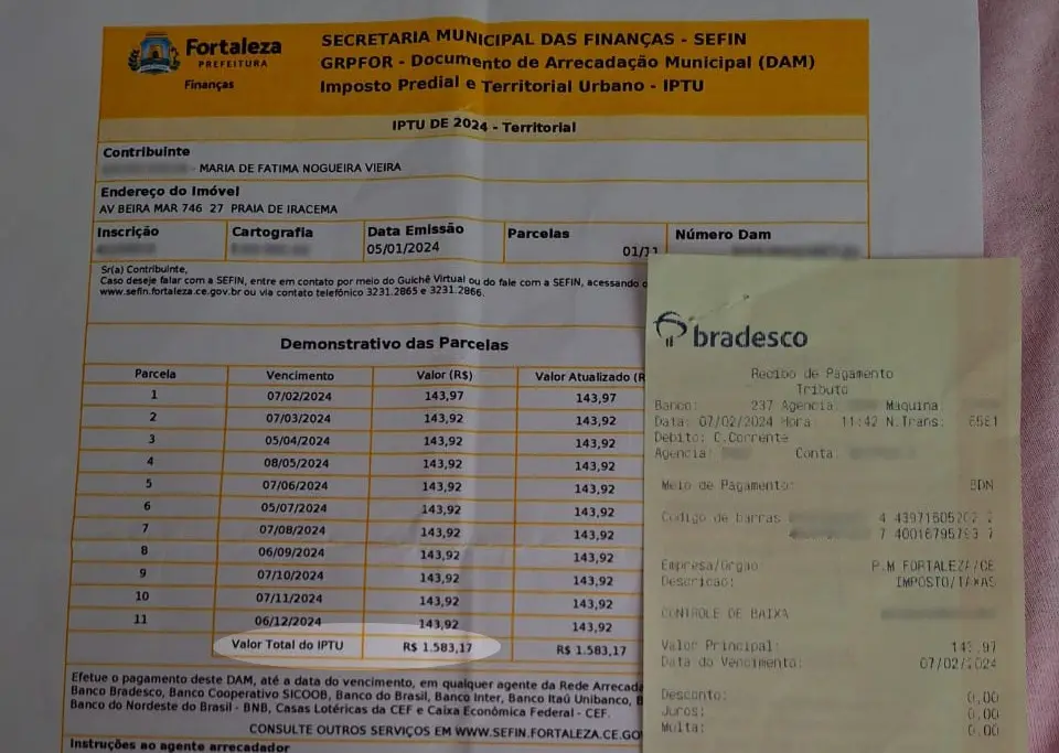 "Eu acho que deveriam ter comunicado a gente, porque eu tenho a matrícula e a escritura. Ainda estou pagando o imposto da União, IPTU, taxa do lixo", acrescenta. São R$ 1,5 mil do imposto de Propriedade Predial e Territorial Urbana (IPTU) e R$ 400 da Taxa de Manejo de Resíduos Sólidos.