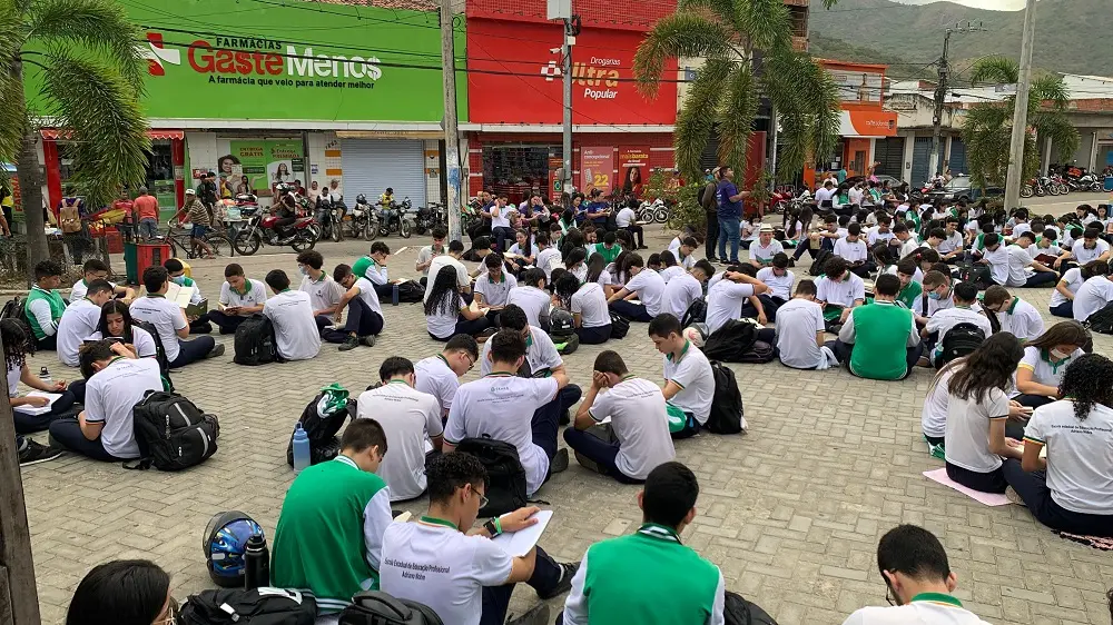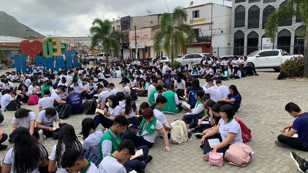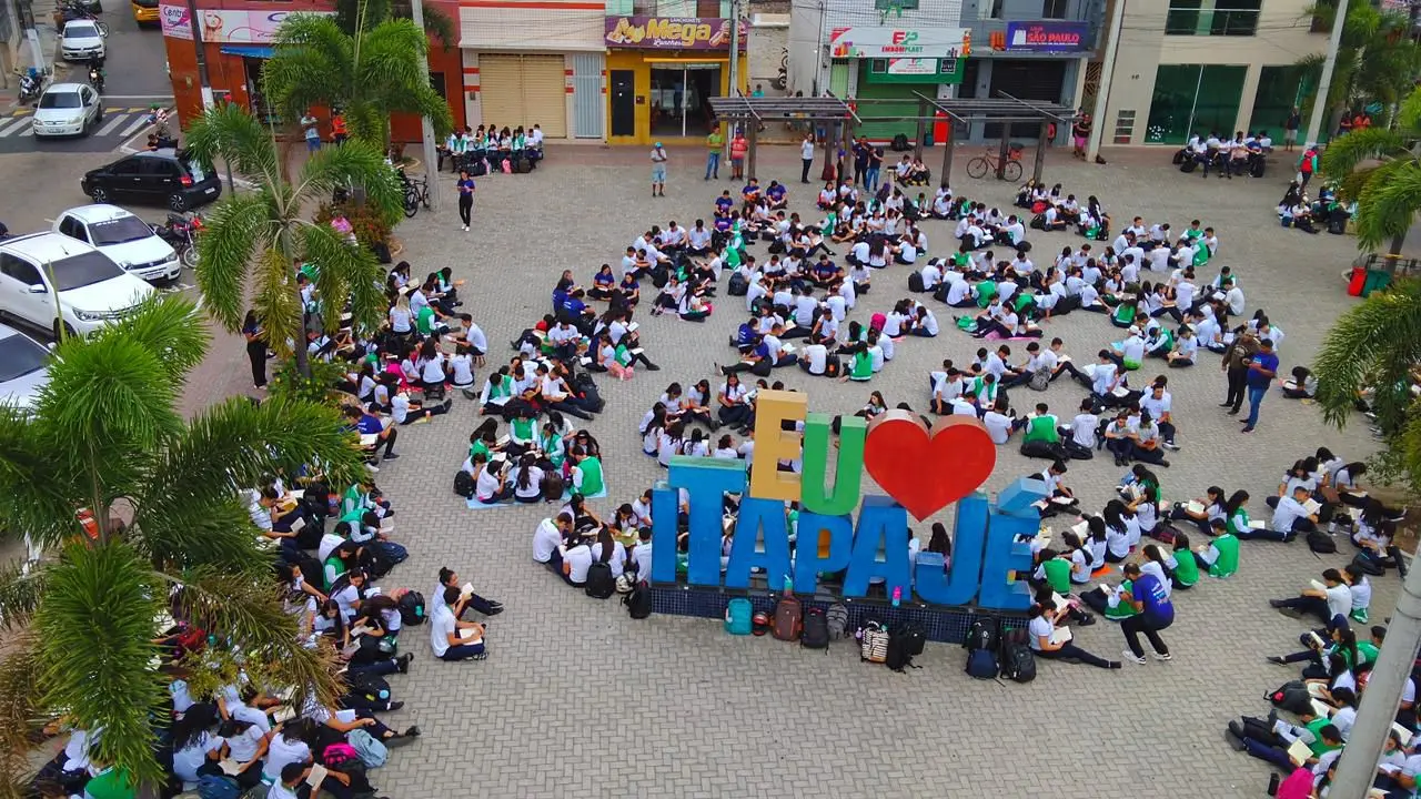A conhecida Praça da Assembleia de Deus, também chamada de Praça do Povão, em Itapajé, município do interior do Ceará, registrou uma movimentação diferente nesta segunda-feira (12). O local onde os transeuntes circulam no centro da cidade, localizada a 128 km da Capital, foi ocupado por 480 estudantes da Escola Estadual de Educação Profissionalizante Adriano Nobre em uma ação de incentivo à leitura.